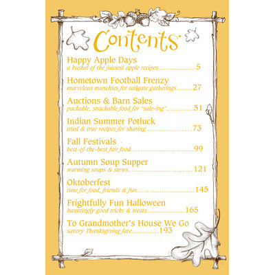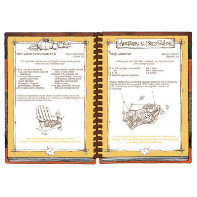 If you love juicy apples, you’ll find an abundance of apple recipes from Honey-Baked Apples & Pears to Autumn Apple Salad. Football Friday night means quick & easy appetizers are on the menu…try Undefeated Bacon-Cheese Dip or Wild-Card Wings for mouth-watering game-night munchies. Autumn is the best time for auctions so tote along a thermos of Hot Caramel Apple Cider and slices of Maple Nut Bread to snack on while bidding on newly found treasures. Comfort food like Chicken & Dumplings or a tureen of steaming October Bisque will guarantee smiles, while nibbling on Monster Claws will have trick-or-treaters howling with delight. Traditional foods like German Potato Pancakes or Maple-Glazed Turkey mean an Oktoberfest or Thanksgiving feast will be fuss-free and delicious.