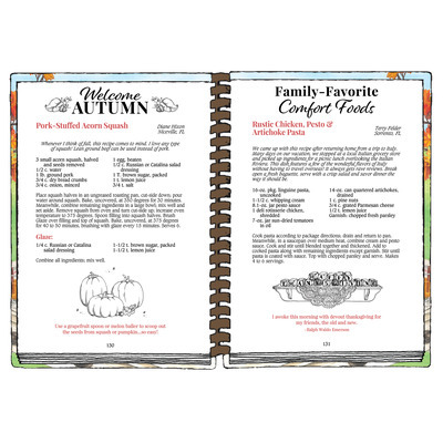 For busy-day meals, choose from favorites like Jim's Kielbasa Vegetable Stew, Cheeseburger Macaroni Skillet or Easy Tortellini with Spinach. Thanksgiving dinner will be glorious, with Delicious Brined Turkey Breast, Southern Cornbread Dressing, Savory Mashed Sweet Potatoes and Cranberry Waldorf Salad on the menu. Better be ready with copies of the recipes on hand to share!